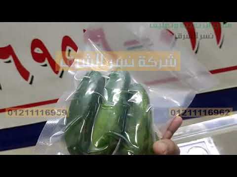 فيديو تغليف الخيار ، الجزر ، خضرروات موسمية بشفط الهواء من الأكياس ثم لحامها في آن واحد لتصديرها كود 601 من نسر الشرق