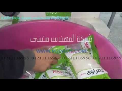 توضيح لطريقة عمل ماكينة تعبئة الأرز بجميع أنواعه داخل كيس لحام خلفي موديل 903 ماركة المهندس منسي