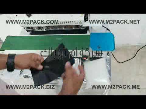 مواصفات ماكينة لحام أكياس الومنيوم ولامينيت متعددة الطبقات مع طباعة التاريخ بسير ناقل