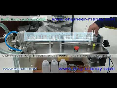 ماكينة تعبئة سوائل نصف أتوماتيك مثل المياه ، الحكول ، الكلور موديل 403 ماركة مهندس منسي