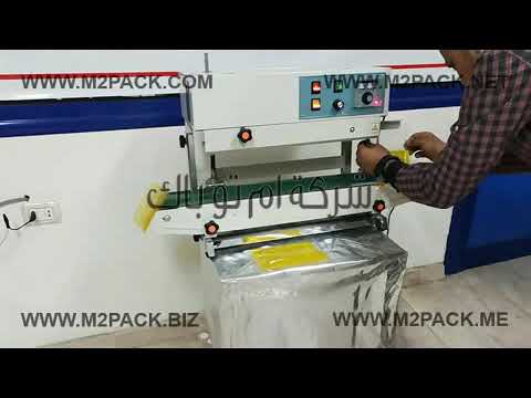 مواصفات ماكينة لحام أكياس الالمونيوم واكياس متعددة الطبقات رأسية مع طباعة التاريخ بسير ناقل
