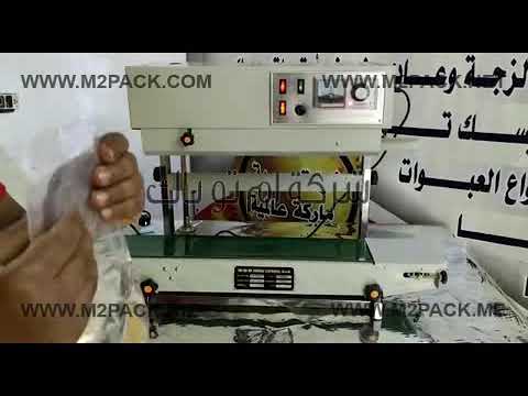 فيديو ماكينة لحام سير رأسي لغلق أكياس السوائل ، أكياس العصائر ، أكياس المخلل موديل 303 ماركة إم توباك