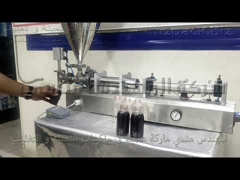 فيديو مكنة لتعبئة السوائل من 5 مل إلي 300 مل للسوائل العادية و اللزجة نصف أتوماتيك كود 404 ماركة إم توباك