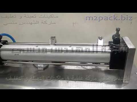فيديو مكينة تعبئة سوائل ذات لزوجة مختلفة وخصائص رغوة مختلفة من 50 مل إلي 300 مل بنظام كمبروسر هواء كود 404 ماركة مهندس منسي