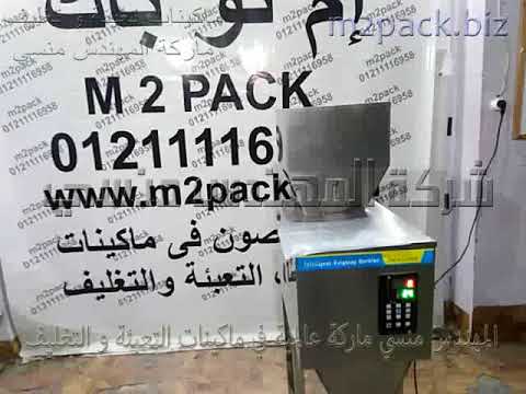 فيديو مكينة تعبئة نصف أتوماتيك للمواد من فاصوليا بيضا ، لوبيا ، فول مدشوش ، أرز ، مكرونة بوزن من 30 جرام حتي 1 كجم موديل 904 ماركة إم توباك