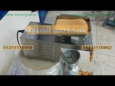 فيديو ماكينة عصر بذور السمسم لإنتاج زيت السمسم تعمل بكهرباء المنزل من شركة مهندس منسي للتغليف